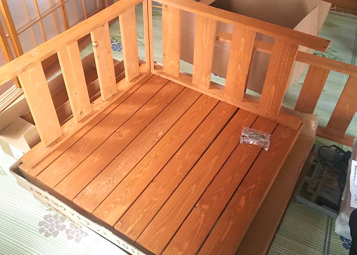 今日は日曜日に届いたウッドデッキのキットを開梱しました。