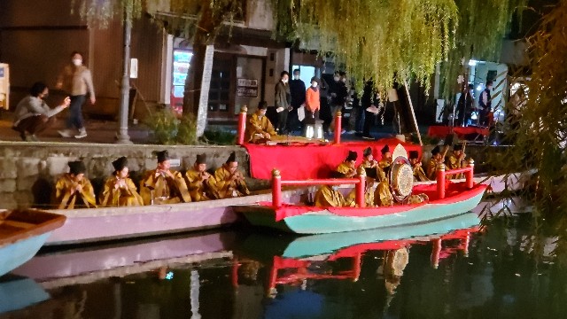 夕刻、18時からは記念館の近くの掘割で、白秋祭恒例の水上パレードが行われました。