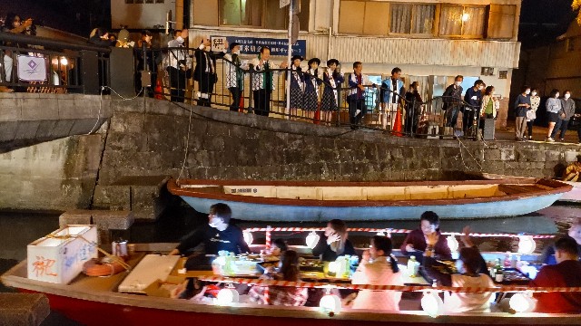 30艘ほどの観光用の舟が飾り付けられて、雅楽の音とともに出船していくものです。