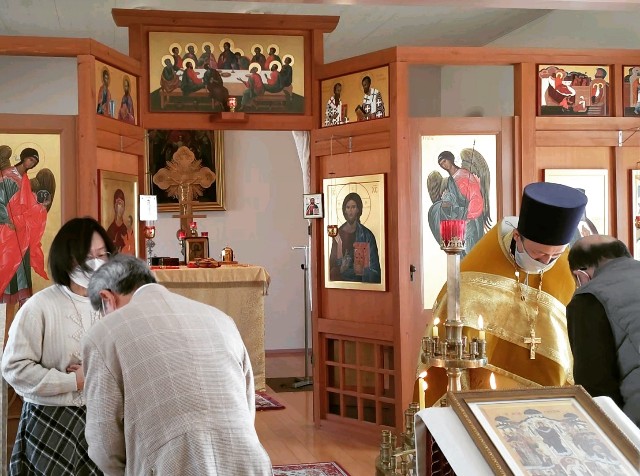 人吉ハリストス正教会では、参祷者が夕方に赦罪の晩課のために再集合することは困難なので、聖体礼儀の終了時に赦し合いの挨拶を行っています。