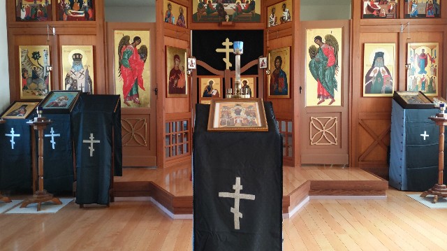 大斎という特別な期間に入ったことを視覚からも意識させるため、聖堂内を暗色に模様替えすることは世界共通の正教会の習慣です。