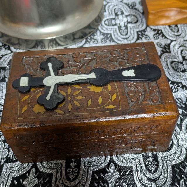 先備聖体は尊体(パン)に尊血(葡萄酒)を染み込ませた状態で、特別な箱に入れて宝座(祭壇)の上に安置しています。たぶん一般の信徒は滅多に見ることがないと思います。